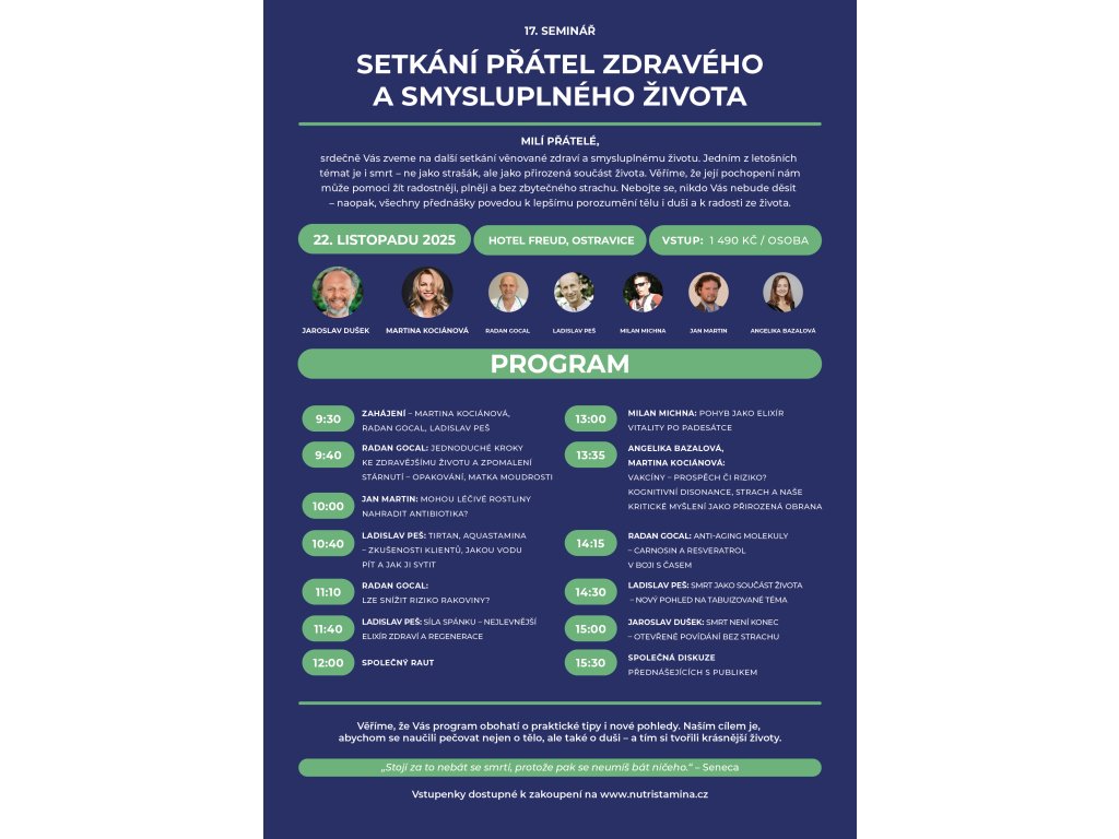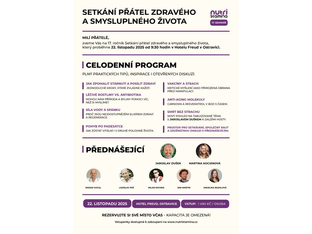 Čekají vás zajímavé přednášky, praktické tipy i otevřené rozhovory o zdraví, vitalitě a životě bez zbytečného strachu.
